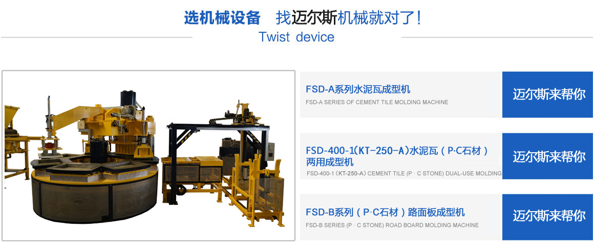 常熟市邁爾斯機(jī)械有限公司是一家集研發(fā)、生產(chǎn)、銷售于一體的建材機(jī)械高科技企業(yè),其前身為2011年注冊創(chuàng)辦的“常熟市虞山鎮(zhèn)豐順達(dá)機(jī)械配件廠”,經(jīng)過多年的努力,于2017年注冊成立“常熟市邁爾斯機(jī)械有限公司”,專業(yè)生產(chǎn)模壓水泥彩瓦機(jī)、P.C石材機(jī)、轉(zhuǎn)盤式成型機(jī)、彩色路面磚機(jī)等綠色建材設(shè)備。公司以市場為龍頭,以技術(shù)為導(dǎo)向,開發(fā)了系列化、標(biāo)準(zhǔn)化的適銷對路的機(jī)械產(chǎn)品,并且注冊了多項(xiàng)國家專利技術(shù),銷售范圍覆蓋全國,并且出口越南、老撾等東南亞和其它國家。